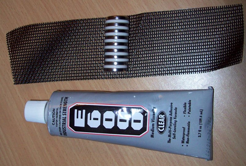 Zwei Tuben des beruehmten E-6000 Klebstoffes. Der braucht 24 Stunden um auszuhaerten.