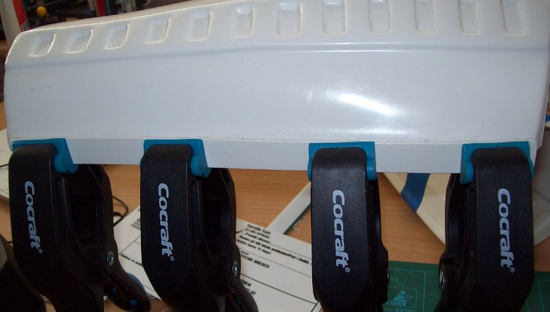 Und nach vielen Versuchen und Herumaergern mit diesem extra aus Uebersee importierten, angeblich so supertollen Kleber, konnte ich dann doch noch irgendwie die Leiste … mhm … befestigen: