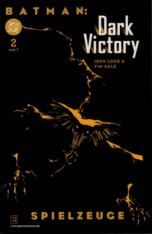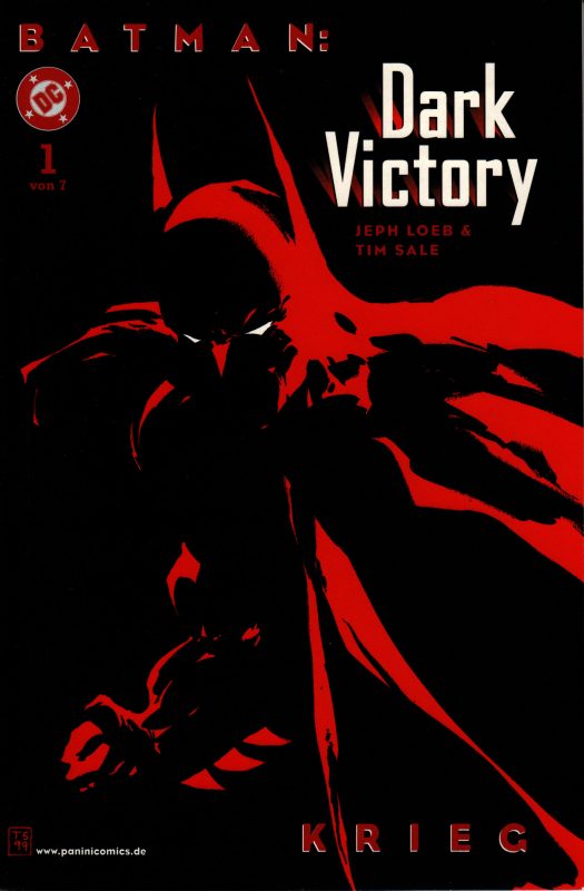 … versprochen. Ironisch ist, dass Batman: Dark Victory eher „altmodisch“ herueber kommt. Oder freundlicher gesagt: klassisch … also irgendwie im „Stil“ der 30’er oder 40’er Jahre des 20. Jahrhunderts. Aber das ist natuerlich wie wir uns den „klassischen“ Batman vorstellen und nicht wie der damals in den Comics war. Leider sieht man das nicht so sehr an in den Covern.