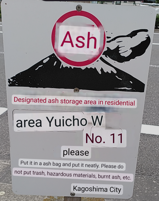 Aber ich schwoff ab. Denn eigtl. wollte ich sagen, dass Japan (geologisch gesehen ein Baby) nicht nur von Erdbeben, sondern auch von Vulkanen geplagt ist — liegt es doch im pazifischen Feuerring. Und weil Kagoshima direkt neben einem aktiven Vulkan liegt, versucht unser Planet diese Stadt (menschlich gesehen) langsam aber (geologisch gesehen) stetig zu begraben.